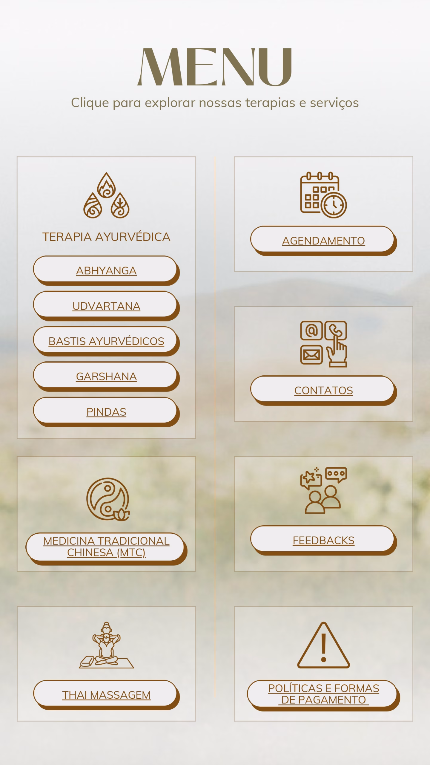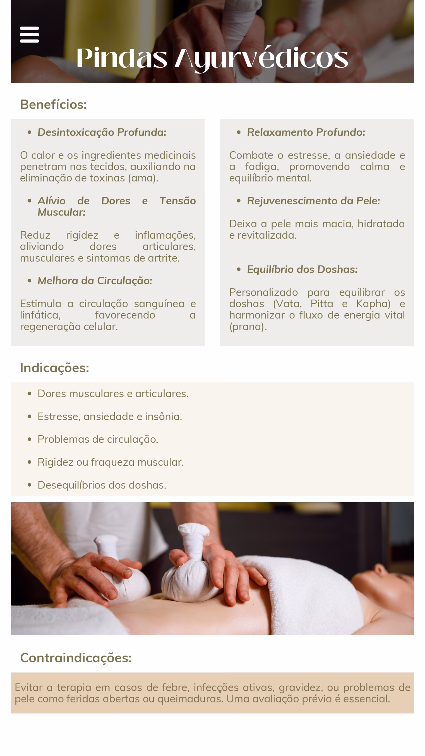 Com base em abordagens integrativas como Ayurveda, Medicina Tradicional Chinesa e Thai Massagem, buscamos identificar os biotipos físicos e emocionais únicos de cada paciente, assim como os fluxos inadequados que podem estar impedindo seu equilíbrio.