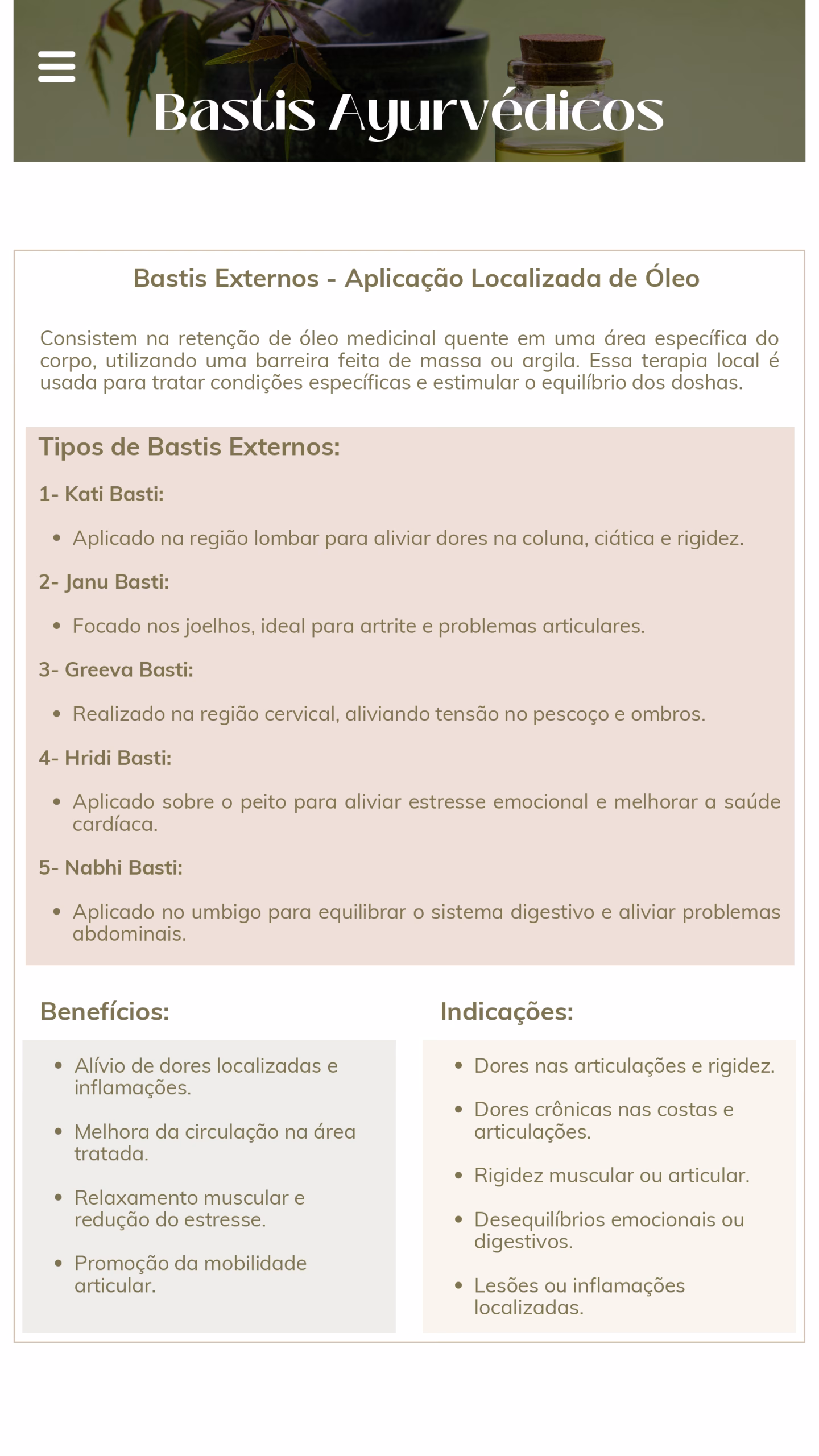 - Bastis Ayurvédicos