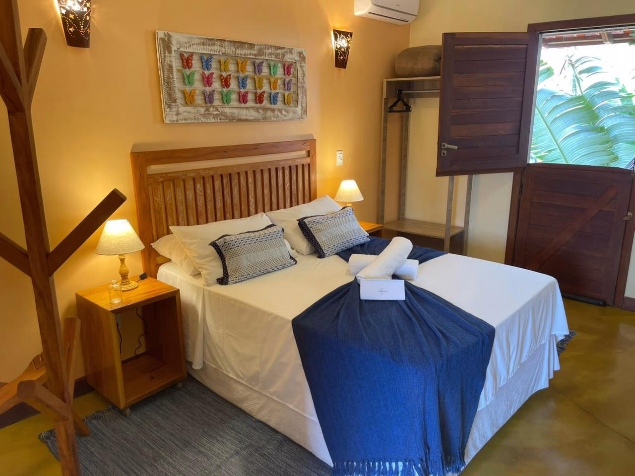 no pavimento superior com varanda e rede. Todos com wi-fi, uma cama de casal padrão, tv