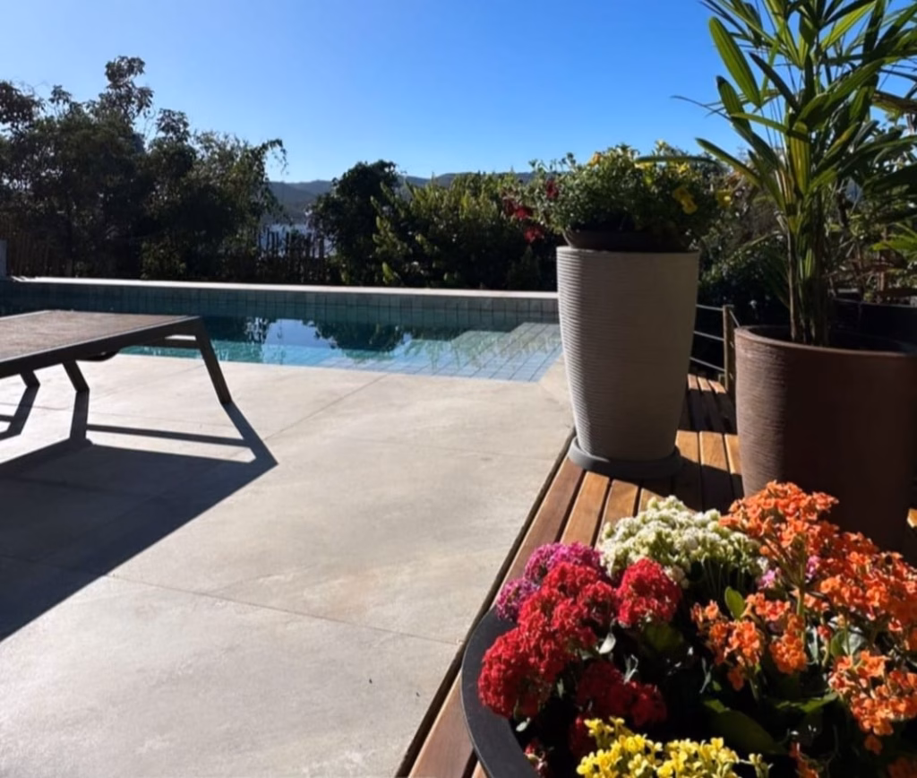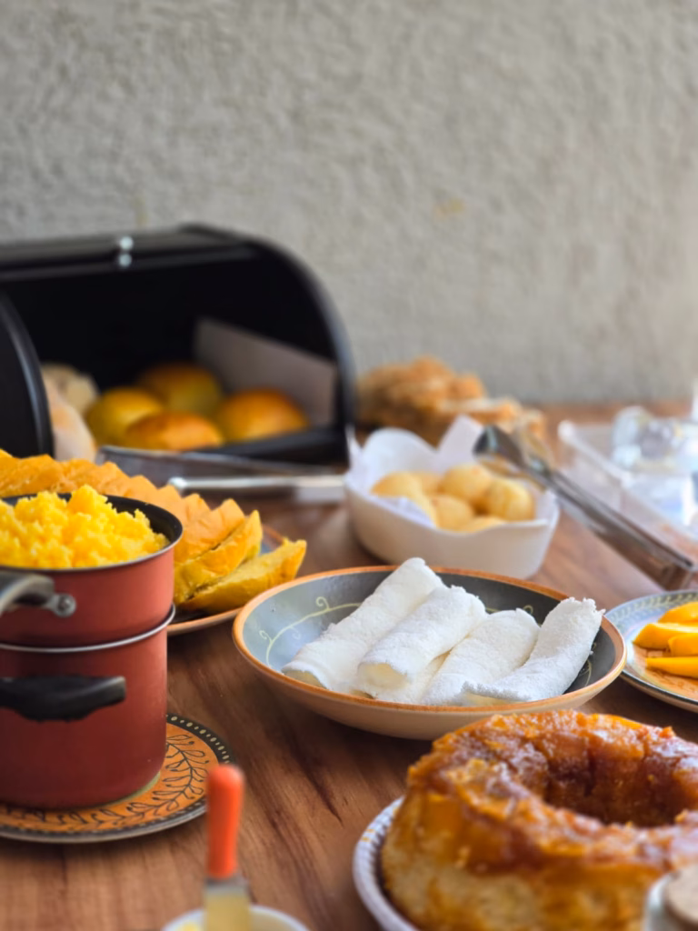 O café da manhã, incluso na diária, é servido na área da piscina das 7h30 às 9h30, composto por itens artesanais para começar bem o dia!