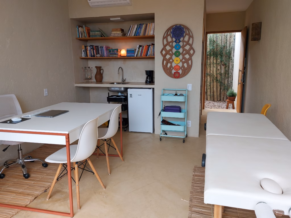 Criada pela terapeuta Ana Caporrino, a pousada também disponibiliza um espaço terapêutico onde é oferecido um cardápio de terapias voltadas ao equilíbrio físico, mental e espiritual, além de tarô, massagens e práticas de yoga. As terapias e práticas podem ser contratadas à parte, individualmente, ou você pode consultar pacotes completos para sua estadia de bem-estar.