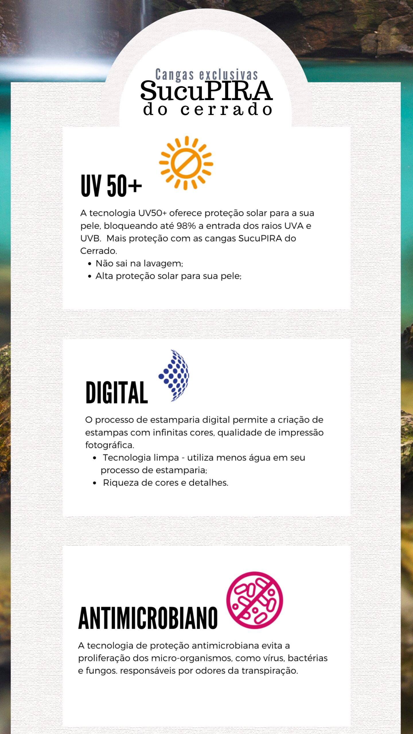 Curta a natureza com mais estilo, conforto e proteção com as cangas SucuPIRA do Cerrado.