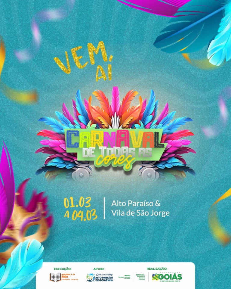 A folia vai tomar conta da Chapada dos Veadeiros de 1 a 4 de março, com o Carnaval de Todas as Cores! Serão quatro dias de muita música, alegria e