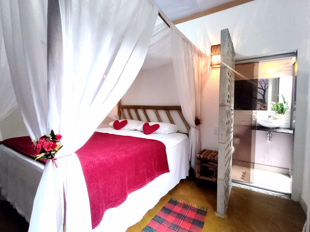 Um espaço acolhedor, ideal para explorar as cachoeiras da região que são lindíssimas e mais cristalinas da Chapada dos Veadeiros, como as que tem na Comunidade Engenho II com a famosa Santa Bárbara, Capivara e Candarú. Ainda perto também por exemplo do Vale das Araras, Complexo do Prata e outras.