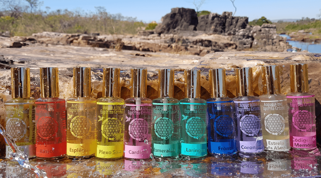 O Banho Áurico de Cristais é uma experiência sensorial única que utiliza uma sequência de perfumes energéticos feitos com elixires e tinturas de cristais, águas vibracionais da Chapada dos Veadeiros e óleos essenciais.