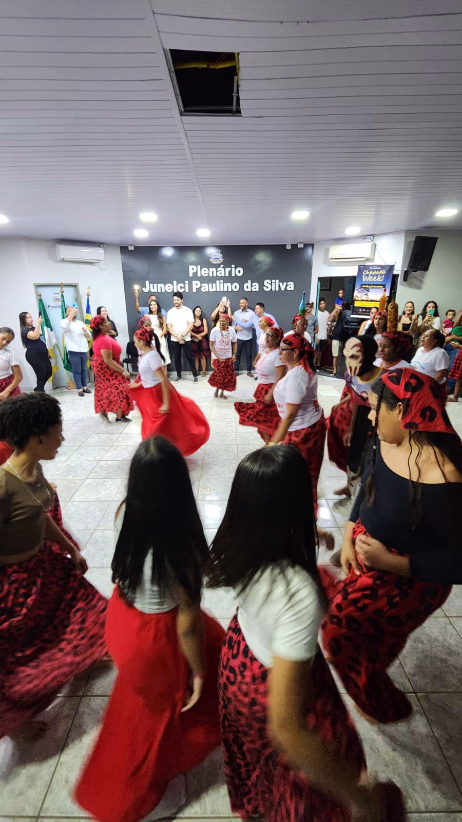 Recebidos no plenário da Câmara dos Vereadores, os profissionais assistiram à apresentação cultural “Caçada da Rainha” com as batuqueiras, uma das manifestações populares mais emblemáticas do município. Na ocasião, foram presenteados com produtos locais e apresentaram o plano de atuação da assessoria de imprensa para a Chapada dos Veadeiros, com foco na promoção de pautas positivas e estratégicas em veículos de alcance nacional.