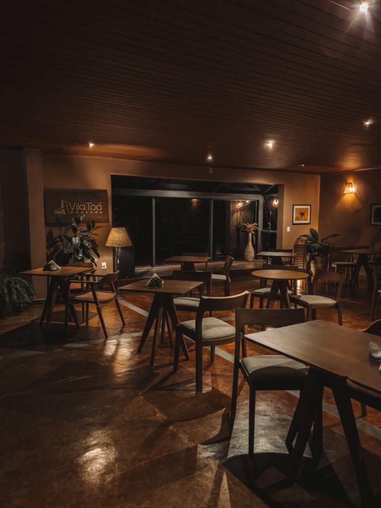 Desfrute de uma experiência gastronômica única no restaurante da Pousada Vila Toá. Aberto ao público diariamente, das 17h às 22h (exceto quartas-feiras), o restaurante oferece um cardápio variado em um ambiente encantador.