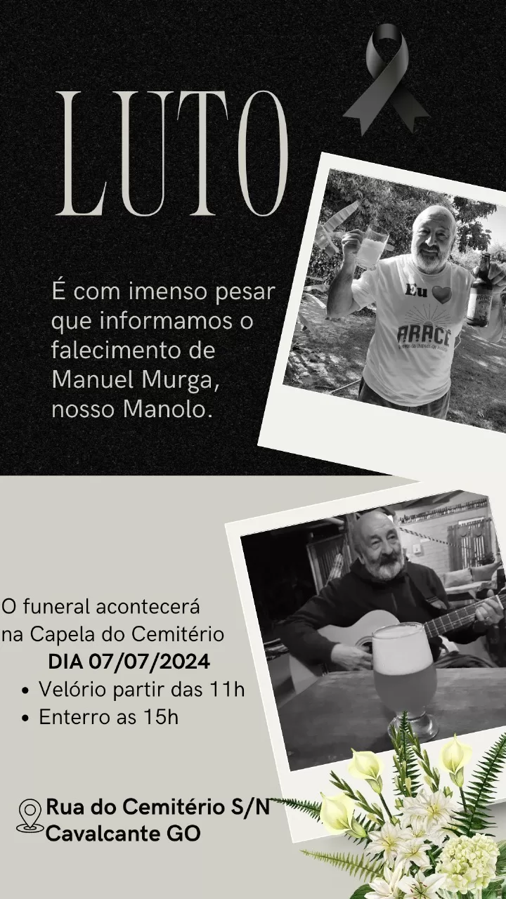 O velório será realizado no dia 07/07/2024, às 11h, em Cavalcante. Convidamos todos a prestar suas últimas homenagens e apoiar a família neste momento difícil.
