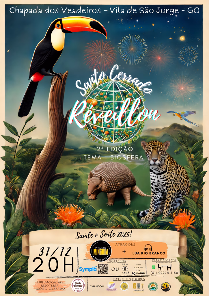 Não perca tempo! Garanta seu ingresso e sua hospedagem agora mesmo. Venha viver a magia do Réveillon Santo Cerrado – Tema Biosfera e deixe a Chapada dos Veadeiros transformar sua virada de ano em um verdadeiro espetáculo.