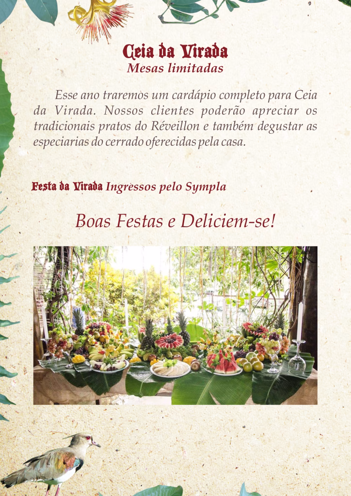 Com mais de 12 anos de tradição, o Santo Cerrado promete uma noite inesquecível que combina música ao vivo, alta gastronomia e um cenário mágico de conexão com o Cerrado. É o local ideal para quem busca renovar energias, cercado pela beleza natural e a vibração única da Chapada.