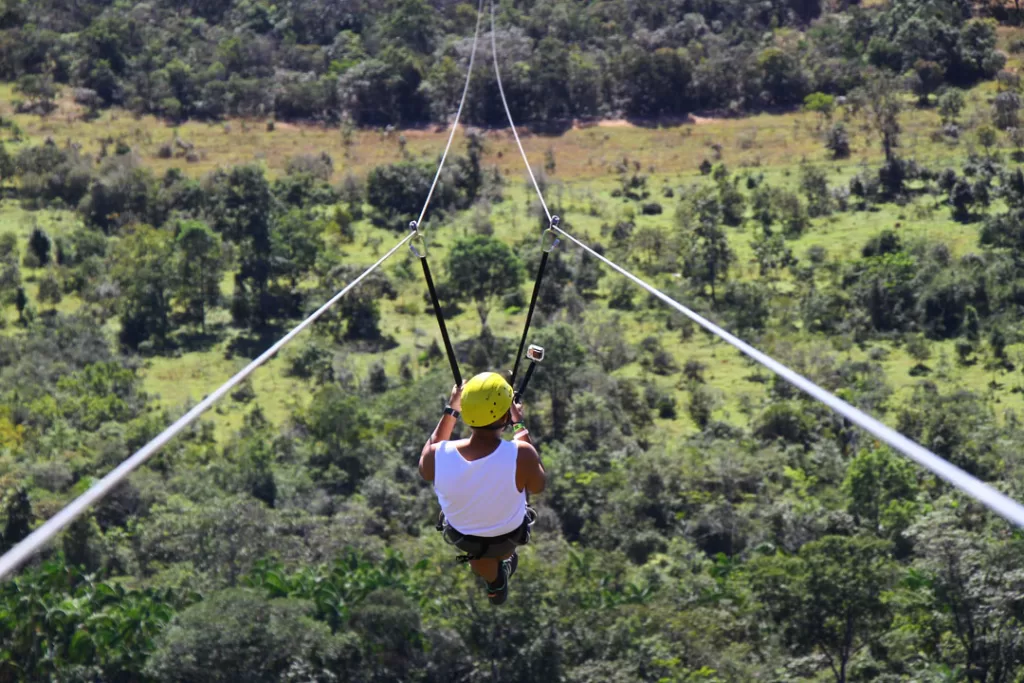 • Tirolesa Vôo do Gavião (10%) – Adrenalina garantida sobre o Cerrado dentro da Fazenda São Bento. Voo sentado: De R$150 por R$135. Já o Voo deitado de frente: De R$200 por R$180 e o voo duplo adulto+criança: R$250 por R$ 225.
